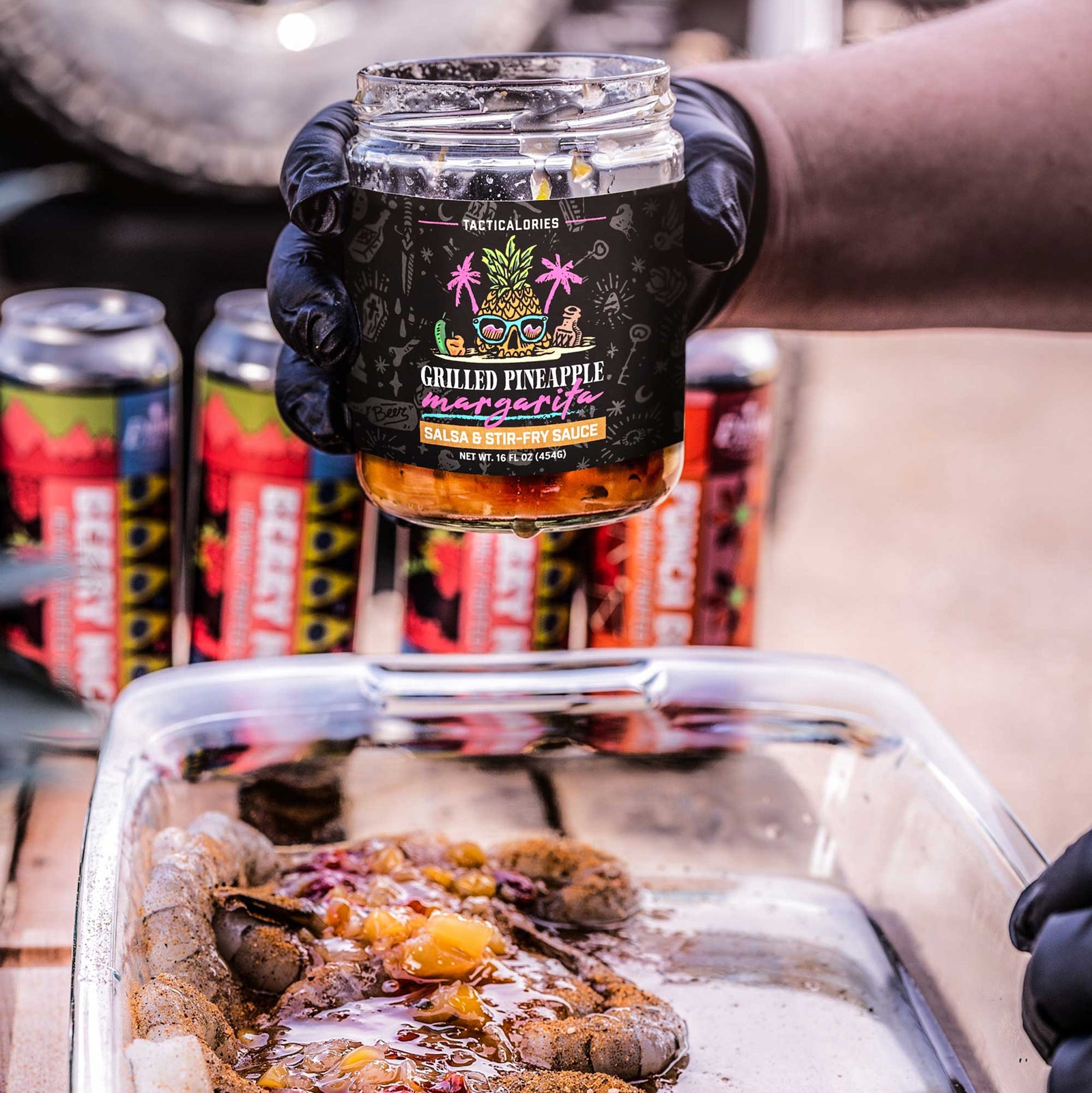 No corn syrup. No filler. Just real-deal salsa packed with grilled pineapple, fresh citrus, jalapeño heat, and a splash of that margarita magic. Sweet, sticky, and a little wild... built for ribs, tacos, and summer weekends that start early.