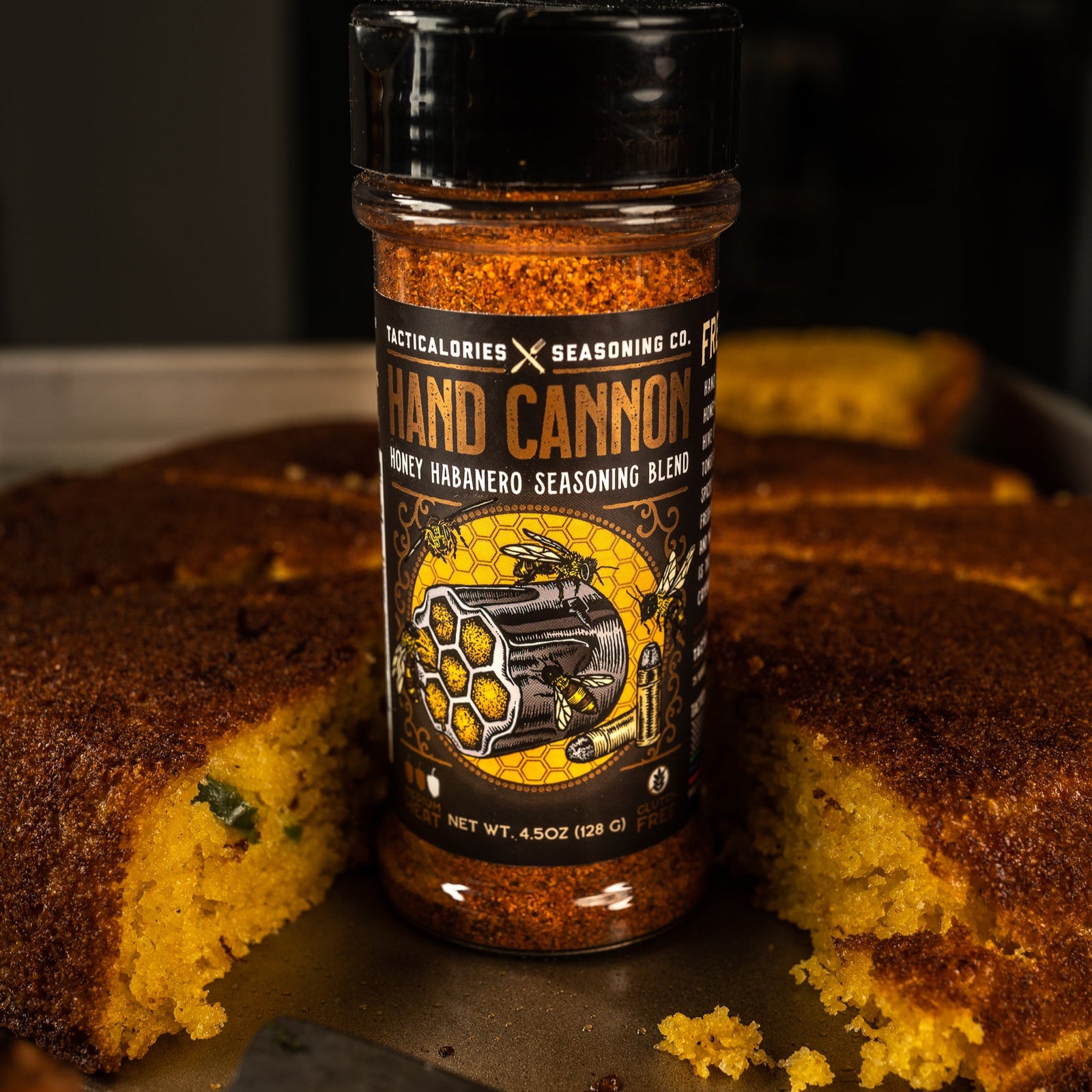 This aināt your grandmaās cornbread. We laced it with HAND CANNON Honey Habanero for a golden, crispy-edged side that brings the heat and the honey. Perfect with chili, BBQ, or straight outta the cast iron.