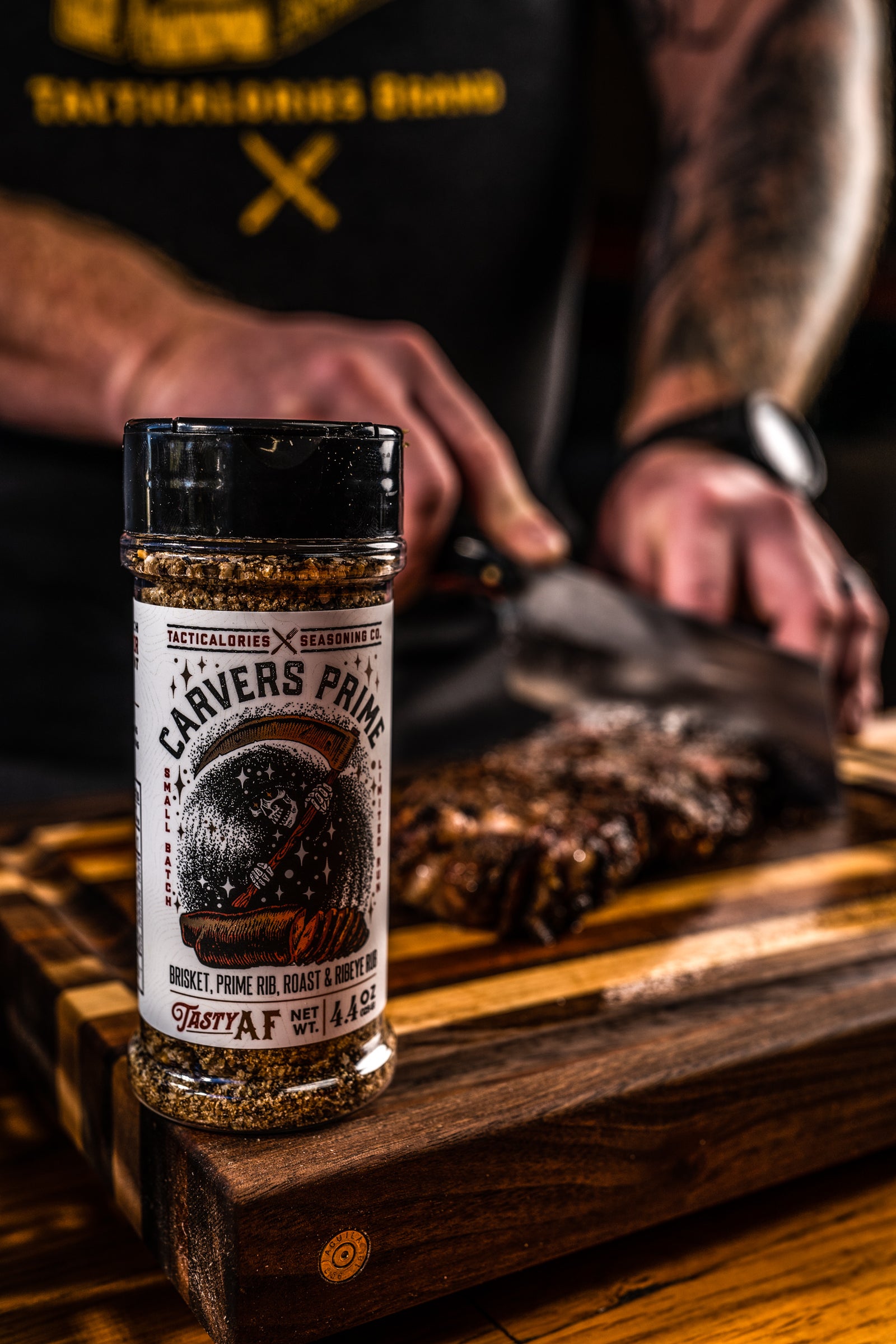 CARVERS PRIME RUB HAS QUICKLY BECOME ONE OF OUR TOP-SELLERS, AND FOR GOOD REASON. THE SALT, PEPPER, ONION, GARLIC AND MUSTARD SEED BASE WILL HELP CREATE AN EXCEPTIONAL CRUST ON WHATEVER MEAT YOU'RE PREPARING.